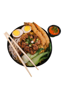 Traditional Japanese bento box served with fried tofu teriyaki, choice of fried rice or noodles, fresh grilled veggies, California roll, and spring roll.